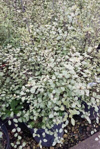 A large bushy shrub with grey-green leaves with white margins. Bell-shaped, black-red flowers. Height 1-4m. Spread 2m. Flowers from May to June. Evergreen. Frost hardy.